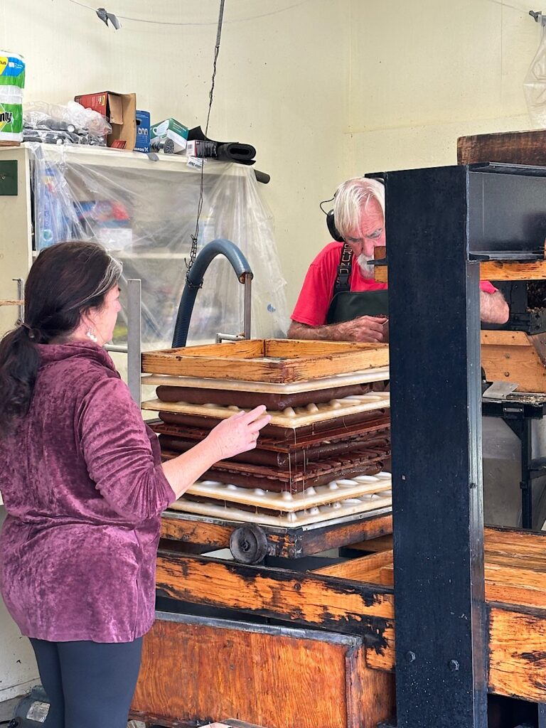We like to go to Lincolnville (an hour-and-a-half drive) once a year in the fall to get a gallon of apple cider vinegar at Sewall’s Orchard. We could arrange to get this vinegar closer to home, or buy a different brand. But it wouldn’t have the same feeling as seeing the location where the apples are grown and watching the press in operation. Bob Sewall is a legend – read about him on his website here and in Down East Magazine here.
