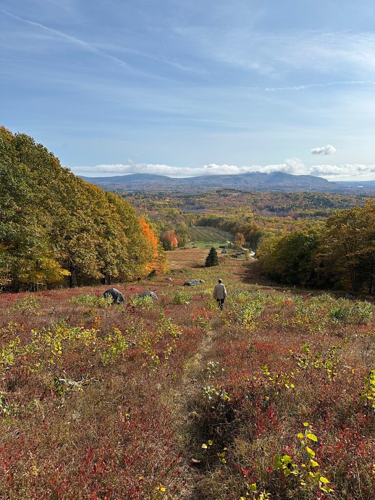 We purchased our vinegar and added a half gallon of apple cider. Then I asked Mia if there was anywhere to walk around there. Without hesitating, she gave one answer. “Yes, you can walk up the hill and see over the Camden Hills to the ocean from the top.”