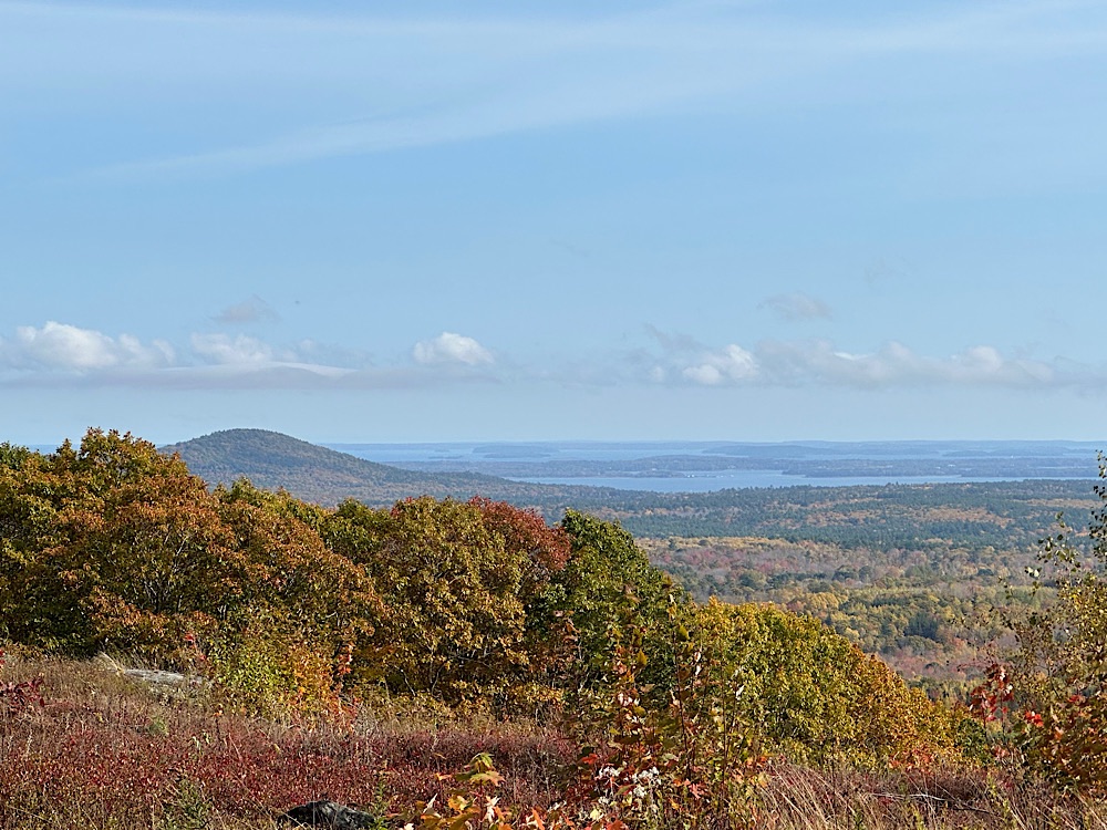 This peak is known as Levenseller Mountain. We could see Mount Megunticook, trapping clouds at its summit. We could see the little hump of Ducktrap Mountain and beyond, the island of Islesboro and the ocean.